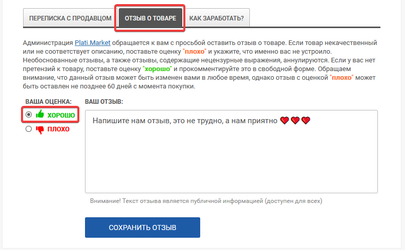 Ваш отзыв существенно поможет нам стать лучше и радовать Вас более доступной ценой, так как именно от рейтинга зависит и комиссия сервиса для продавца.